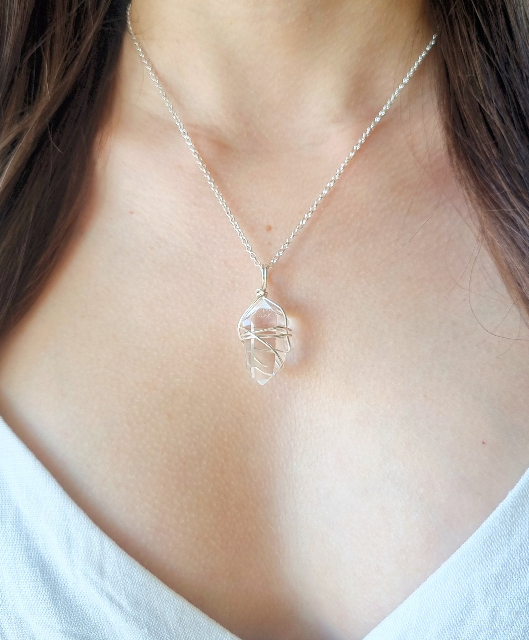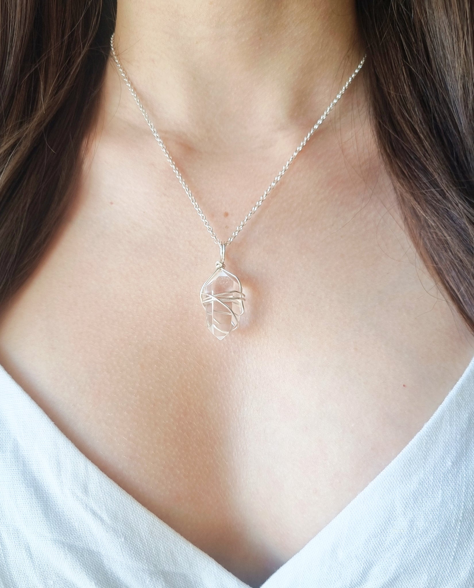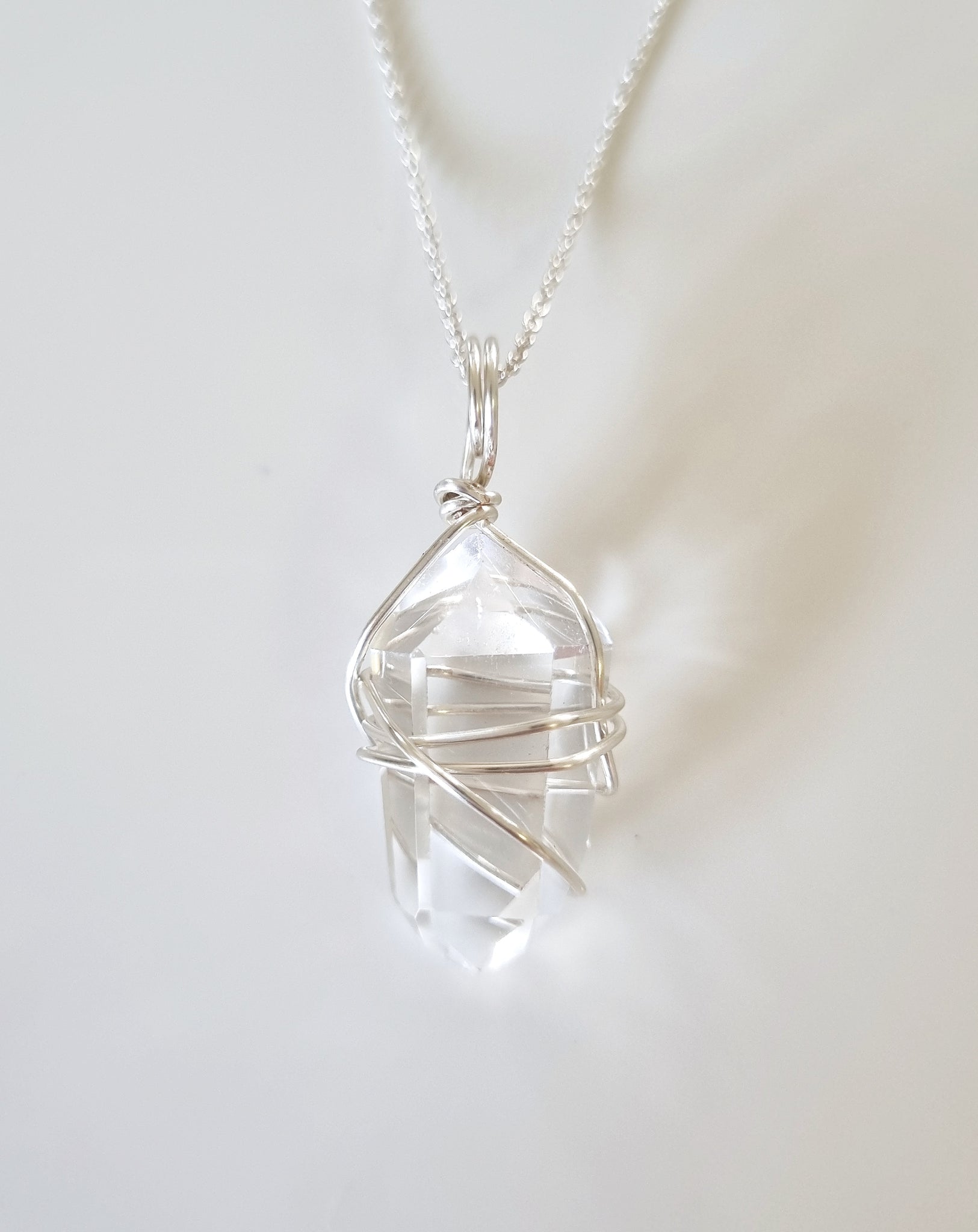 This beautiful pendant has been made with Silver Plated wire and Clear Quartz.