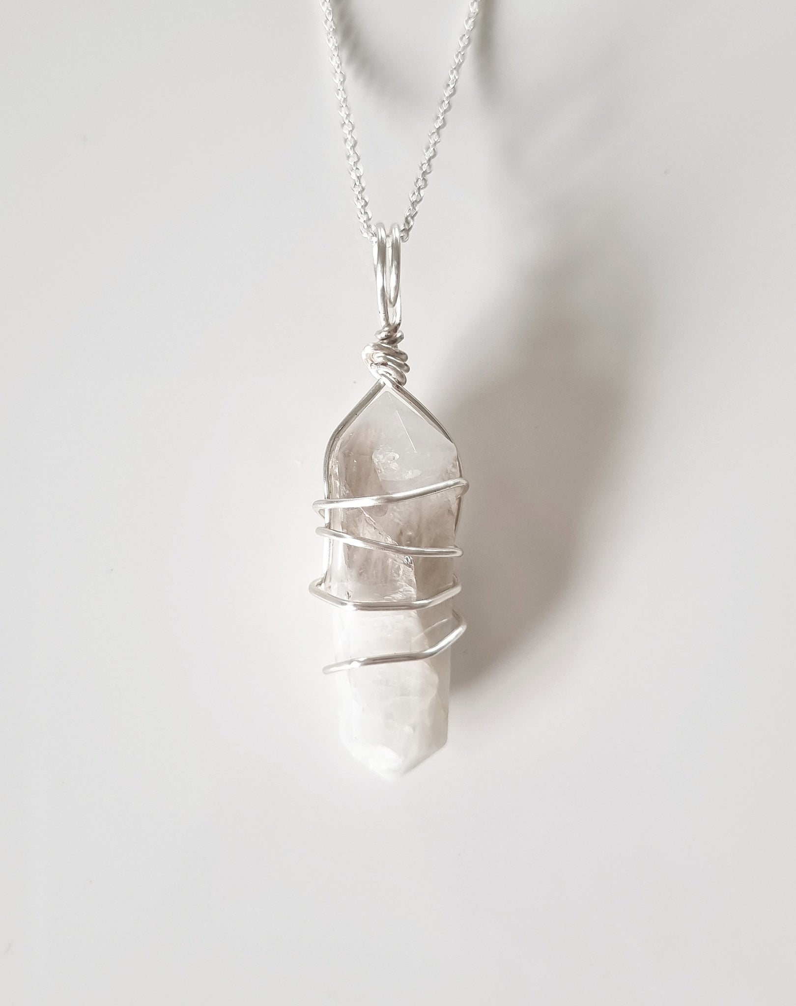 This beautiful pendant has been made with Silver Plated wire and Moonstone.