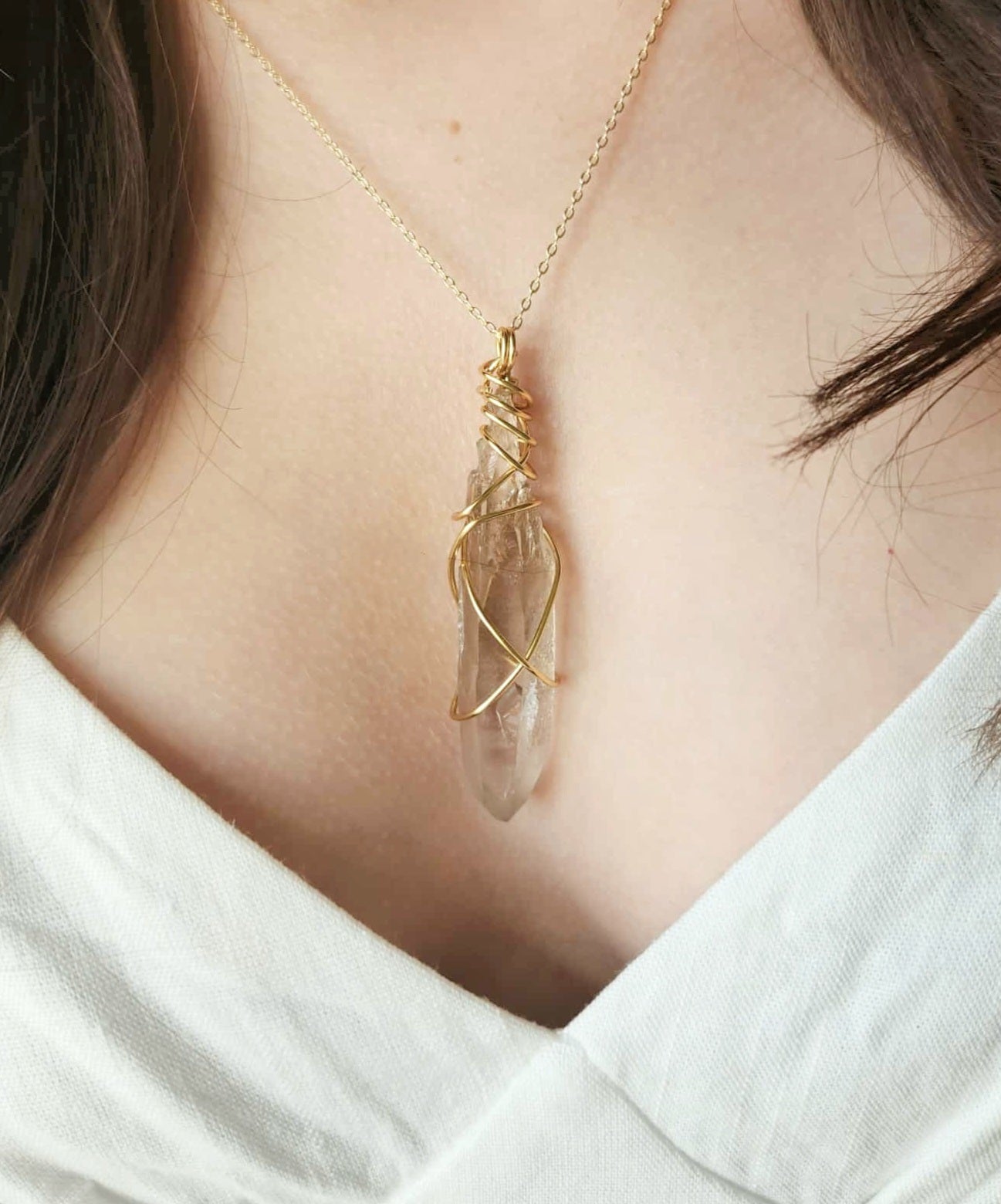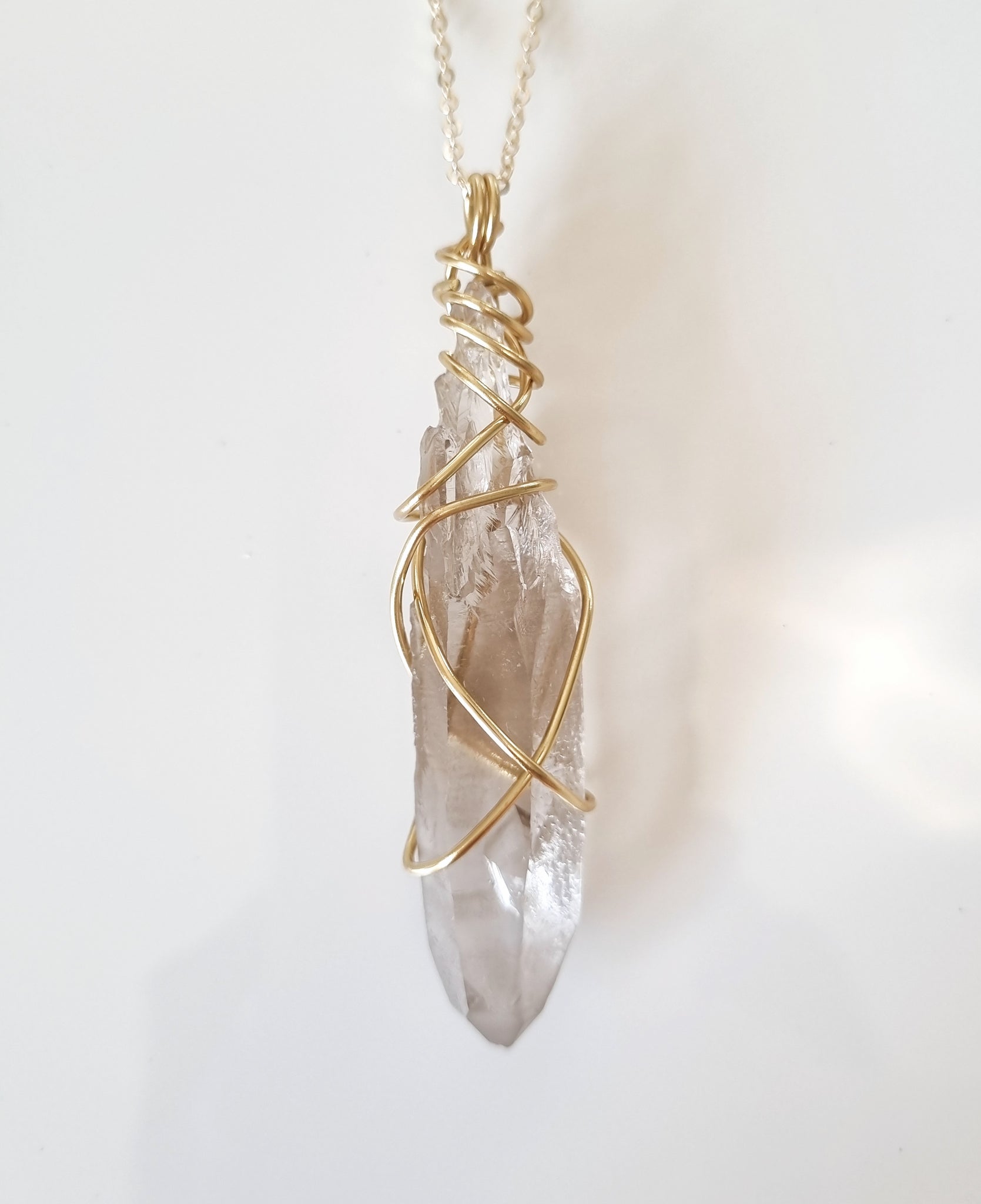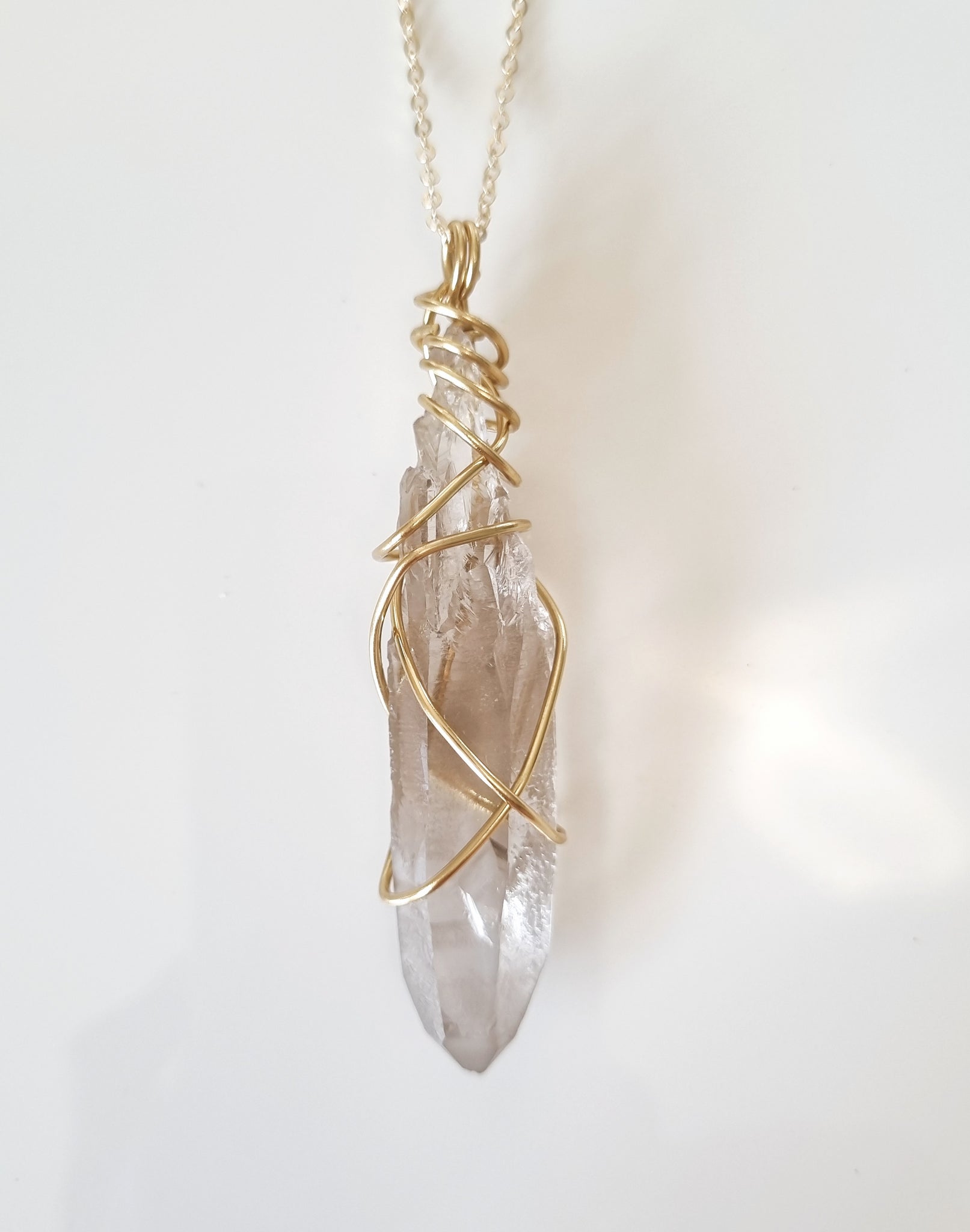 This beautiful pendant has been made with Brass wire and Smokey Quartz.