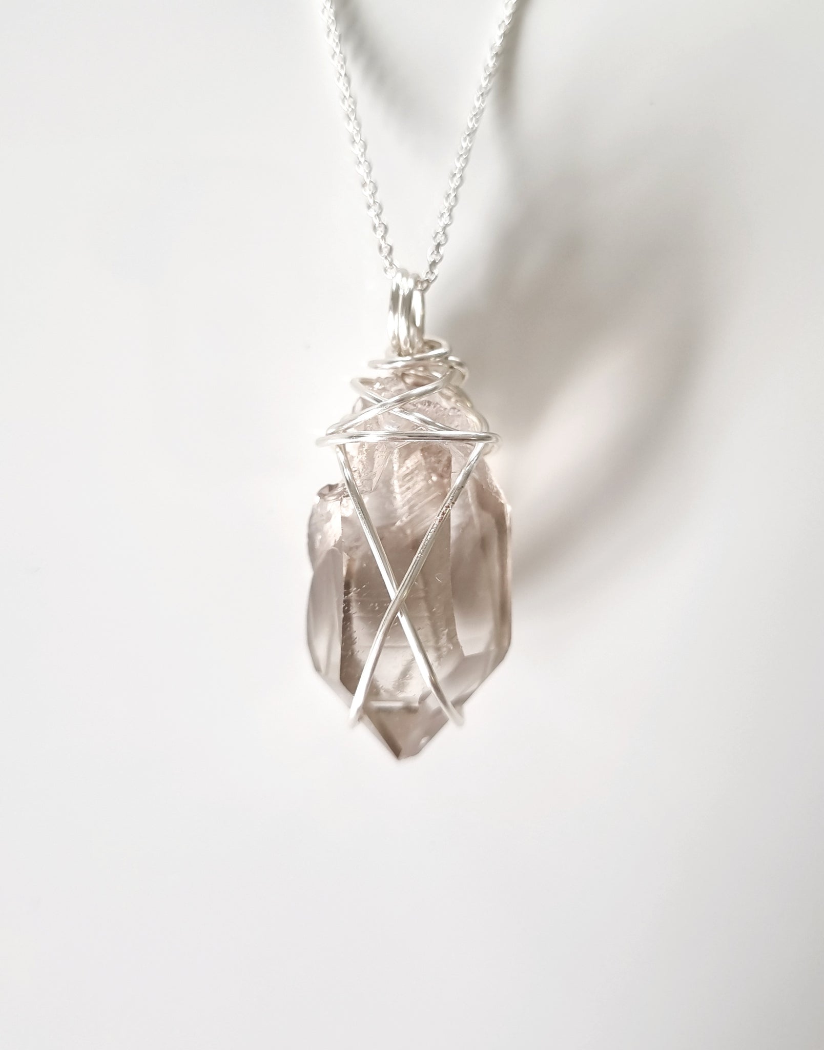 This beautiful pendant has been made with Silver Plated wire and Smokey Quartz.