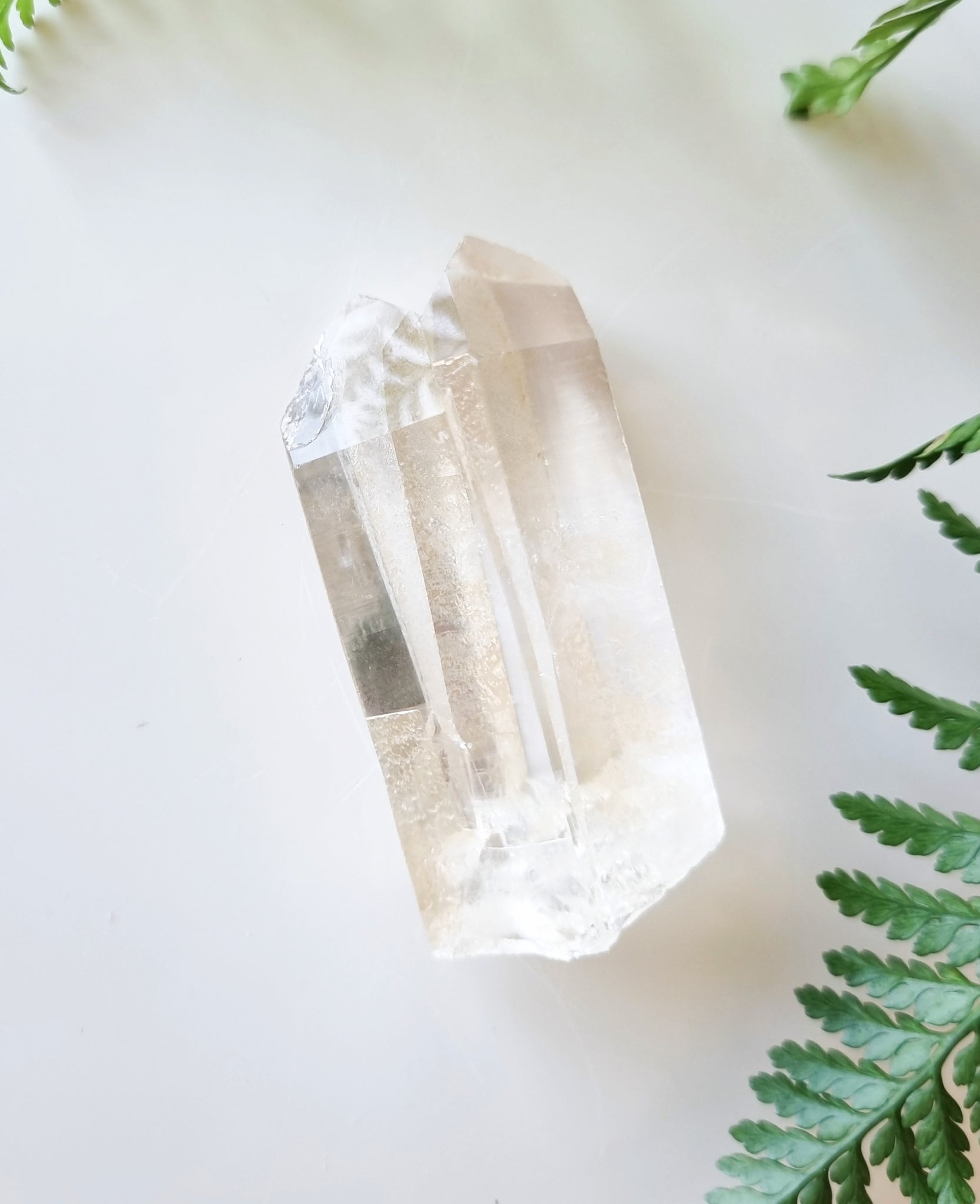 This piece is extra special and rare as it has formed as two points from the same base, making it a Tantric Twin crystal. The Tantric Twin formation symbolises harmonious relationships, divine union and twin flame connections.